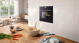 | Features | TFT Touch Display Plus: easy control thanks to an innovative Digital Control Ring and enlarged TFT touchscreen. Air Fry Function with Tray: for perfectly fried foods, such as vegetables and chips. Eco Clean Direct: less cleaning effort thanks to a special coating of the ceiling, back panel, and side liners. Steam Function with Sous-Vide: for gentle, healthy food preparation that keeps food moist throughout. Added Steam Function: food turns out crispy on the outside and juicy on the inside. Home Connect: Home Connect for control via the App that works with Alexa and Google Assist. Bosch Assist: a menu of dishes for automatic cooking. Safety Features: Mechanical safety locking device, Child lock, Automatic safety switch off function, Residual heat indicator, Start button, Door contact switch |