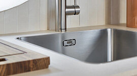 Franke’s 18/10 grade stainless steel has a high nickel and chromium content. This helps it to resist extreme heat or cold, as well as keep your surface rust-free. It’s the go-to material for serious chefs.