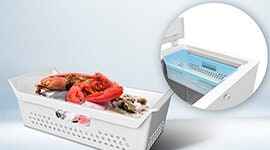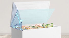 The light and easy-to-open door stays suspended at a 30 or 60 degree angle when in use, giving you a more streamlined experience using your freezer and keeping your hands free.