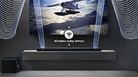 Experience Dolby Atmos and DTS Virtual:X without the clutter of HDMI cables. Directional audio fills your room with depth and dimension, perfect for movie nights, sports events, or music playlists that deserve room-filling, cable-free sound.