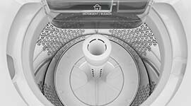 | Features | Pre Mix detergent: making sure powders are properly dissolved and activated before the wash. Time Remaining: A countdown time will display so you know when your wash will be done. Water-Saving: An automatic water level sensor chooses the ideal water level for each wash. Glass Lid: Premium safety glass not only looks good, but is also scratch-resistant. Wash Programs: Delicate, Rinse & Spin, Bedding, Daily 45, Fast 20, Full Load 60, Dirty 90, Extra Dirty 120, Spin, Machine Clean, Eco Save, Gym Wear. Wash Options: Rinse, Delay End, Child Lock, Start/Pause, Water Level, Temperature, Spin Option. Dispenser: Bleach Dispenser, Fabric Softener Dispenser, Powder or Liquid Detergent Dispenser. |