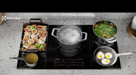 At the touch of a button, the FlexiBridge cooking zone switches to three pre-set temperature levels: high, medium and low so you can simply move the pan to seamlessly go from boil to simmer.