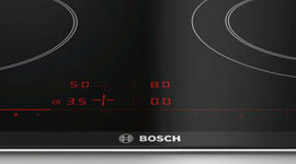 | Features | Finish: Black Schott Ceramic Glass. Controls: Touch Control Panel Power Levels: 9 Heat Levels. Timer: Individual Timer up to 99 Minutes. Pan Sensor: Yes. Safety: Automatic safety cut-off, Residual heat indicators, Child lock. Cooking Zones: |