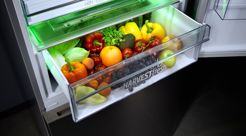 The humidity controlled fruit and vegetable crisper helps to provide the perfect microclimate for longer-lasting preservation.