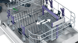 The cutlery basket is a clever invention but it can get in the way when you want to place a large pot in the lower rack. Beko's Sliding Cutlery Basket solves that problem by moving freely to the right and left so you have room to fit in those bulkier items.
