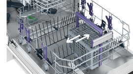 The sliding cutlery basket offers flexible placement along the bottom rack, making space for larger pots and pans when needed. Its movable design improves loading efficiency and organisation, ensuring thorough cleaning of utensils without sacrificing space for other dishes. Ideal for busy, adaptable kitchens.
