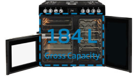 With a generous 184-litre combined capacity, this range cooker easily handles large trays and multiple dishes at once. It’s the ideal solution for family meals, dinner parties, or batch cooking, providing the space and flexibility needed for busy kitchens and ambitious home chefs.