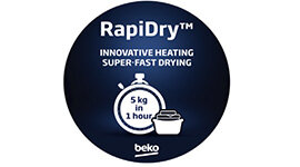 Beko RapiDry gives you flexibility in drying clothes. A hybrid type tumble dryer which merges conventional heater and heat pump technology. This lets you choose between drying quickly and drying energy efficiently.