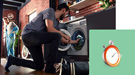Make sure your clothes are ready to wear, even when your plans change. UltraFast technology uses high-power components to wash and dry half a load of laundry in 3.5 hours.