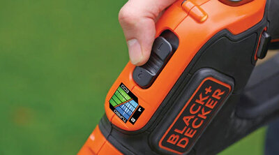 The power select run time extender prolongs the battery run time by increasing the power for tough overgrown areas or reducing the power for lighter tasks.