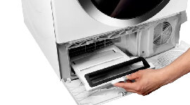 Replacing the standard door filter, AutoClean blows lint and dryer fluff into the bottom of the appliance, which is then flushed alongside the condenser, storing the fluff in a handy collector.