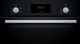 | Features | ● Bosch Serie 2 60 cm Built-in oven HBF134EB0A. ● 3D Hotair: perfect results thanks to the optimal distribution of heat on up to 3 levels simultaneously - without the taste transfer. ● Pop-out controls: For an easy to clean front. ● EcoClean Direct: almost no cleaning is necessary thanks to a special coating of the rear wall that automatically absorbs grime. ● Red LED display control: easy-to-use thanks to the time functions.. ● Temperature range: 50 °C - 275 °C. ● Full glass inner door. |