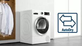 To prevent garment shrinkage, uneven drying, and overheating, this dryer has an AutoDry system to measure and detect moisture and temperature levels. This system provides precise, gentle, and consistent drying.