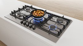 The new gas cooktops with FlameSelect from Bosch are packed with innovative technology. They offer you a completely new level of precision when it comes to adjusting the flame by selecting 9 predefined power levels.