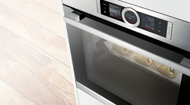 | Features | ● Temperature range 30°C - 300°C ● TFT Touch Symbol Display with Bosch Control Ring ● Anthracite enamel cavity ● Eco Clean direct on the oven back panel ● Automatic temperature proposal ● Actual temperature display ● Electronic clock/timer with end time programming ● Info button ● Bar handle ● Door contact switch |
