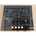 | Material | Black tempered glass base with bevelled edges and enamelled cast iron pan supports |