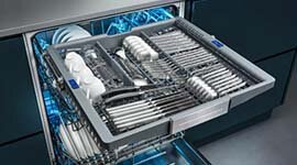 | Features | Extra Clean Zone: Provides an even better cleaning result for items placed directly over the three rotating nozzles in the top basket. RackmaticPlus™: 3-stage top basket can be adjusted to three height levels to maximise convenience. VarioDrawer™: Provides an extra loading level for cutlery and utensils. AquaStop™ Plus: Water supply device with lifetime anti-flood protection. EcoSilence Drive®: Quiet and Energy-Efficient Brushless Motor (BLDC) DosageAssist™: Maximises the effectiveness of detergent tablets. Auto-Brilliance™: Automatic detergent and rinse aid sensor. Heat Exchanger: - The hydroDry heat exchanger assists with condensation to help dry dishes. Special Options: Extra Dry, Intensive Zone, Hygiene Plus, Speed Perfect, Machine Care. Wash Cycles: |