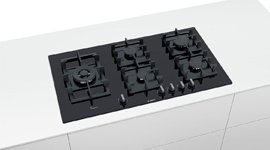 | Features | Flame Select: Precisely adjust the gas flame precisely using nine defined levels. Surface Finish: Tempered Glass Black Finish. Wok Burner: powerful cooking at up to 15 Mj/h. Controls Knobs: Sword Knobs for Ergonomic Control easily access knobs in front with a strong grip for effortless turning. One-Handed Electronic ignition: just push and turn the knob to ignite the flame. Flame Failure: A flame failure device is fitted to each burner to prevent unwanted gas flow when the flame goes out. 5 x Gas Burners: Left Rear: 6.5Mj |