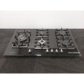 | Material | Black tempered glass base with bevelled edges and enamelled cast iron pan supports |