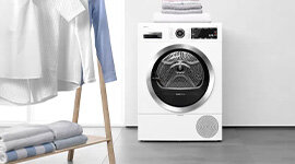 Stop bedding tangling in your dryer! The Bosch dryers with bed linen programme keep the sheets moving in both directions to prevent them from tangling around one another thanks to the reversing drum system.