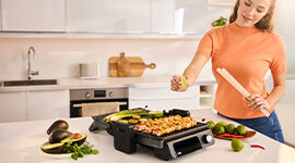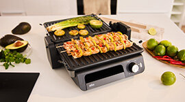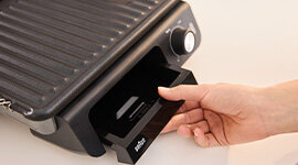 Integrated grease tray and sloped, tilting plates drain away excess oil as you cook, helping you prepare lighter, healthier meals without compromising on delicious grilled flavour and texture.