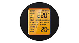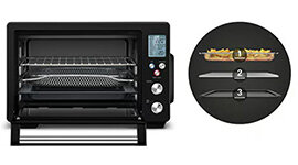 With the help of the LCD display, you can quickly navigate through the 10 preset functions, as well as adjust for precise temperature and time. Also features a countdown timer and preheat complete alert.