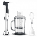 | Features | ● Revolutionary bell-shaped blending base ● Internal ribbing reduces suction for greater control and more efficient blending ● Capacity: 750ml food processing bowl and 1.25L multi-purpose jug ● Non-scratch base to protect your pots and pans ● Blade cover for blending shaft for added protection ● Low to high control for precise blending and processing ● Adjustable 15 setting speed control |