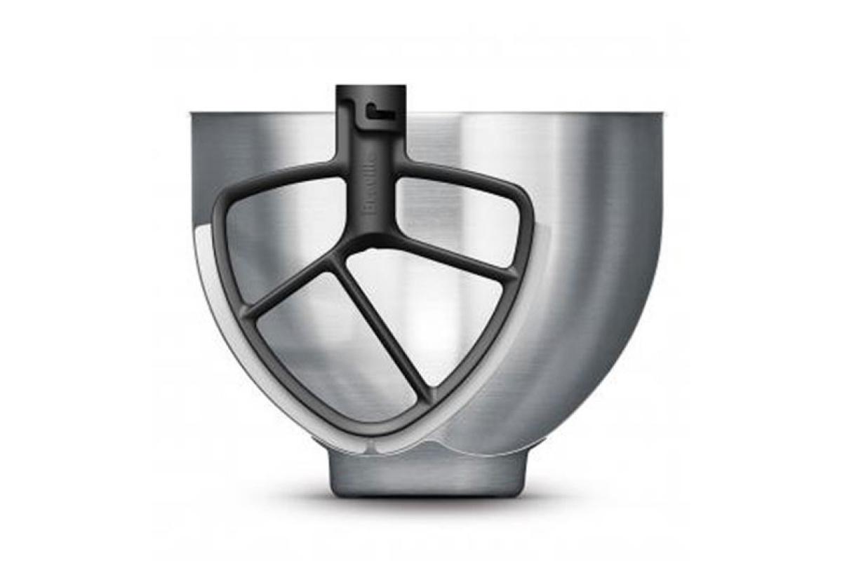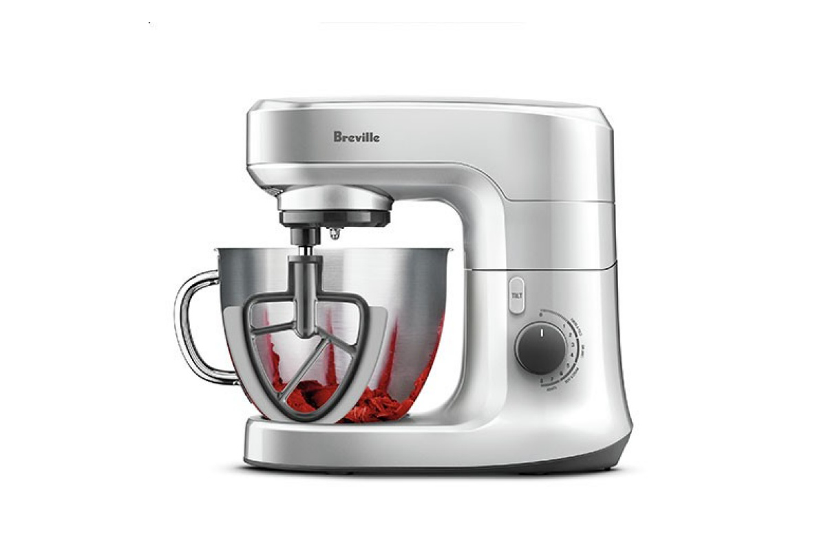 Many stand mixers include three standard attachments, but this Breville unit comes with a fourth in the form of the double-sided scraper beater. This beater features a flexible edge that leaves no part of the bowl untouched. This attachment cuts down mixing time by 60 per cent when compared to previous Breville mixers.