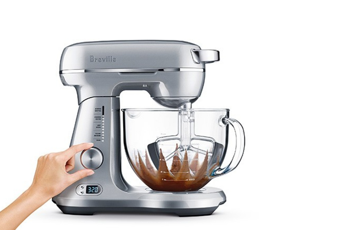 Many stand mixers include three standard attachments, but this Breville unit comes with a fourth in the form of the double-sided scraper beater. This beater features a flexible edge that leaves no part of the bowl untouched. This attachment cuts down mixing time by 60 per cent when compared to previous Breville mixers.