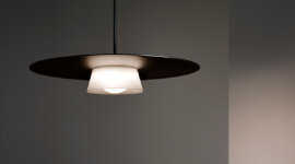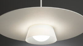 The sculptural design is ingeniously created through the large floating disc balancing upon the white silicone shade that surrounds the module. It’s a delight in engineering and beauty.
