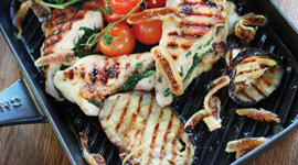 The Chasseur grill pan has grooves on the cooking surface to create seared grill marks on food. This also lets juices and fats from your food to collect underneath, allowing you to cook with less oil.