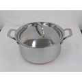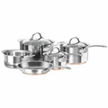 This cookware is constructed with copper at its core and layered with pure aluminium. This design delivers rapid heating and very even heat distribution, resulting in consistent cooking results.