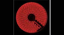 The heating element is formed of a coil of resistant material which teaches the working temperature quickly. Easy to clean with simple minimalistic design.