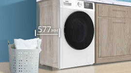 Designed with a narrow depth, the Space Pro design of this washing machine makes it easy to install in apartments or laundry rooms with restricted space.