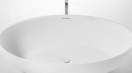 The Ellipse bath’s flowing shape and balanced proportions create a striking focal point. Its sculptural form feels both modern and timeless, bringing a sense of calm elegance to any bathroom.