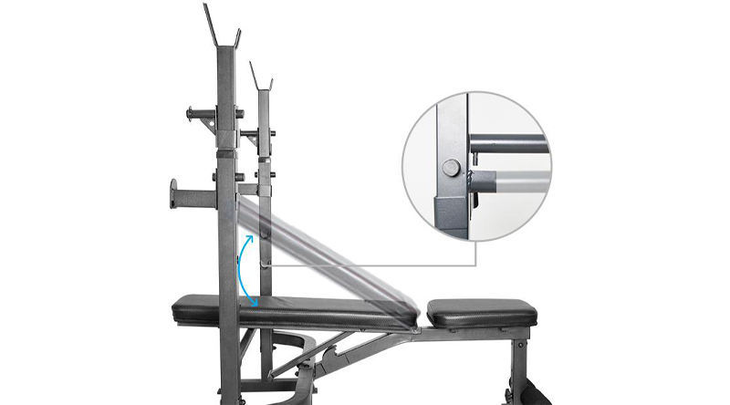 The safety spot bars and barbell hooks are excellent for a secure bench press workout or can be used as a squat rack. They are adjustable to suit different user heights.