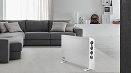 The heater’s three dials manage the thermostat’s 6 power levels, the fan speed, and the 24 hour timer. You can program this timer to only run your heater at the times of day when you’ll be at home, for added comfort, convenience and efficiency at home.