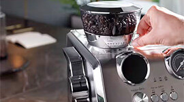 Keep your countertop clean and eliminate mess with the smart tamping station, applying up to 20kg of even pressure to a professionally-styled portafilter for perfectly tamped coffee grounds every time.