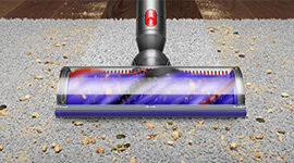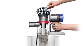 The Dyson Motorbar head is designed to dig deep into carpets and hard floors to remove stubborn dirt, dust and hair. Polycarbonate vanes automatically clear long strands and pet hair from the brush bar as you clean, so there’s no need to stop and detangle.