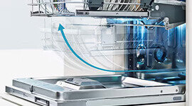 SatelliteClean shoots multiple jets of water into every corner of the dishwasher to ensure every item is thoroughly cleaned. The double rotation movement continuously changes the angle of the water jets to ensure maximum coverage.