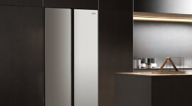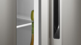 Sleek and streamlined, this fridge is designed with recessed door handles to blend seamlessly into any space.