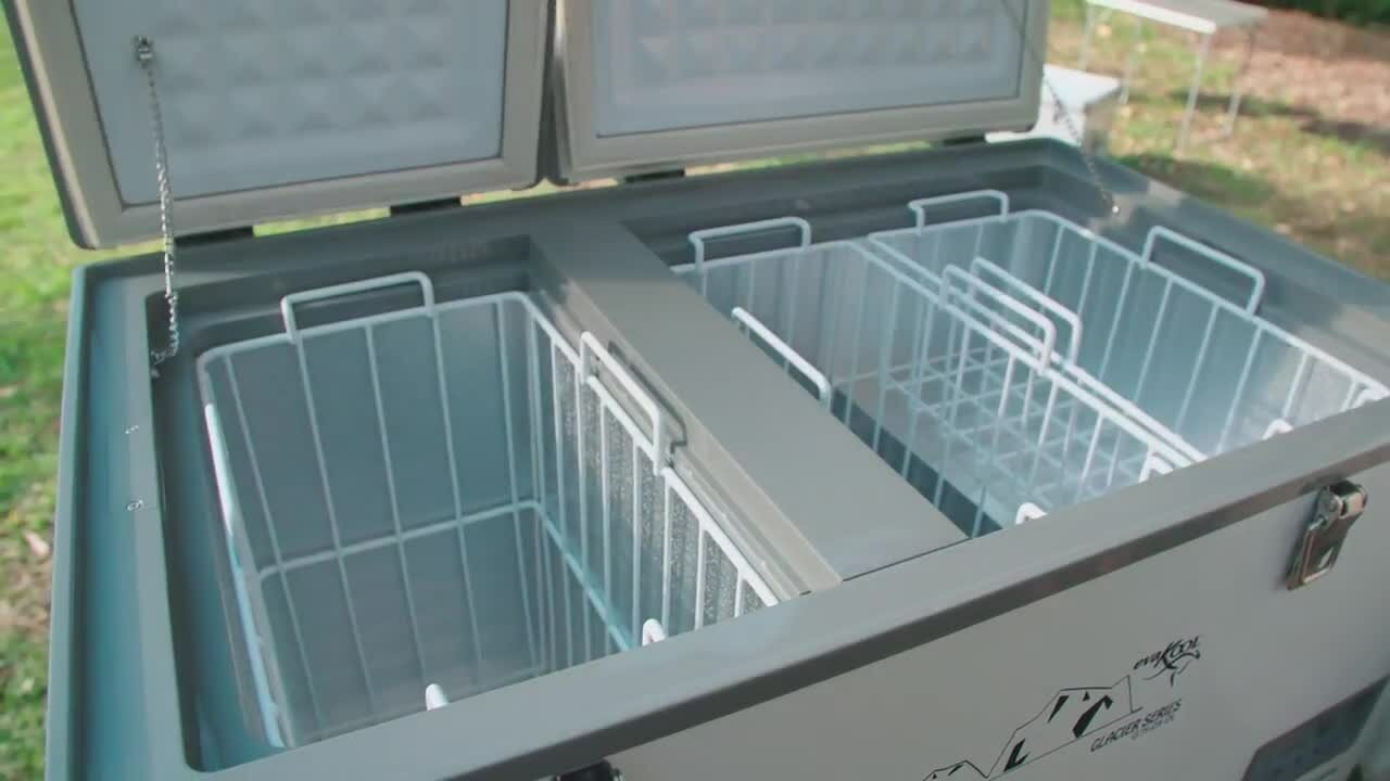 | Features | Heat resistant white gloss fibreglass Fully insulated base and lid Lightweight but sturdy Smooth walls, hygienic and easy to clean No Joins or gaps Will not rust, corrode or dent Will not absorb food tastes or odours Does not need a cover Quality Fittings Handles can be used as tie down points Drainage bung for easy cleaning Removable baskets Silent, reliable, efficient operation Digital control Low voltage protection Will operate on angles up to 30 degrees Self diagnostic fault system Normal and economy mode selection Proven low power usage for longer battery life Simple to use controls |