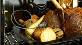 The built-in food probe allows home cooks to precisely roast their meats. You can set the oven to turn off automatically when your food reaches the ideal internal temperature.