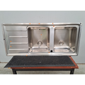 | Description | Several small dents and scratches on the front and inside the bowls. One of the sink corners has been slightly bent upwards. Lots of marks and scratches on the back. Also some parks of the black stickers have snapped off/ hanging off. |