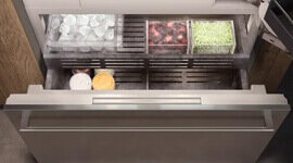 Experience exceptional food preservation with the Gaggenau 400 Series Vario Refrigerators. The fresh cooling drawer maintains temperatures close to 0 °C with precise humidity control, ensuring your ingredients stay fresh longer. The user-friendly TFT touch display offers intuitive control, while movable door racks and adjustable shelving provide flexible and efficient storage solutions.