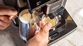 Gaggia’s stainless steel steam wand reproduces the professional results of your local cafe. Luxurious milk froth for lattes, cappuccinos, and more. The shape of the wand can be used with different kinds of milk jugs and also dispenses hot water for teas and infusions.