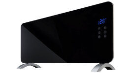 Sleek black glass panel with a minimal footprint blends effortlessly into contemporary interiors, making it ideal for compact spaces such as hallways and bedrooms. Perfect for those who value both form and function in their home heating solutions.