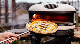 A precision digital thermometer and visible flame design allow users to easily adjust and monitor the oven’s heat for perfectly cooked pizza every time.