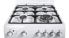 Mounted with a small splashback, this cooker features front controls positioned safely and well away from the reach of inquisitive little fingers. Whether simmering, frying or boiling, 4 variably-sized gas burners, including wok burner, offer plenty of cooking flexibility.