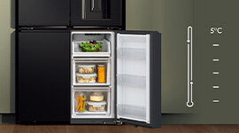 When you need extra space, SwitchZone lets you change the bottom right compartment to fridge or freezer. Change it back just as easily, or select any temperature between -18°C to +5°C.